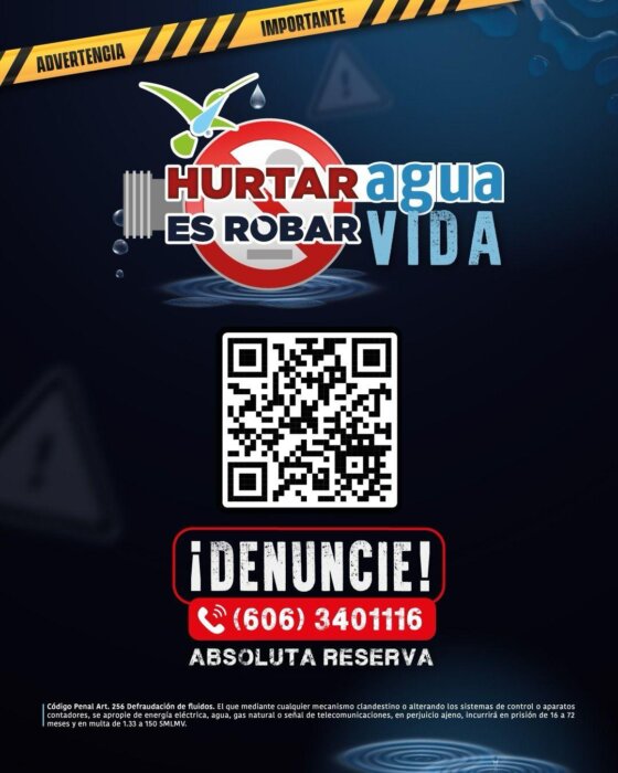 🚨 ¡Hurtar Agua Es Robar Vida! 💧En Aguas y Aguas decimos NO al hurto de agua. Manipular medidores o hacer conexiones ilegales es un delito que nos afecta a todos. Respetemos el agua, denunciemos el fraude y cuidemos la vida en nuestra ciudad.