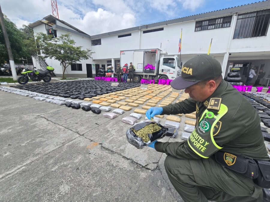 En un puesto de control ubicado en el sector conocido como La Paz, sobre la vía que conecta a Santa Rosa de Cabal con Chinchiná, las autoridades incautaron cerca de dos toneladas de marihuana que eran transportadas en un vehículo tipo furgón.