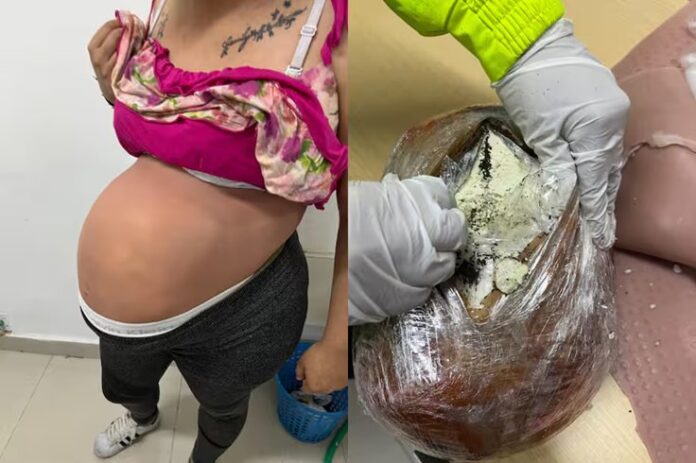 Increíble: Mujer fingió su embarazo. La falsa barriga estaba cargada con cocaína.