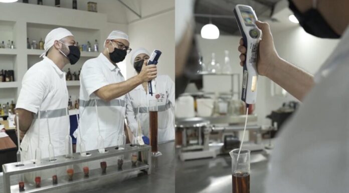 El laboratorio de la Industria Licorera de Caldas lleva a cabo análisis de control de calidad.