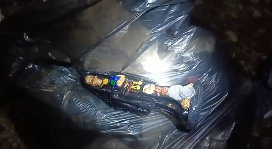 En el lugar también fue hallada una figura esquelética vestida con túnica, identificada como la “Santa Muerte”, a la que los capturados le rendían culto y rezaban antes de cometer los delitos.