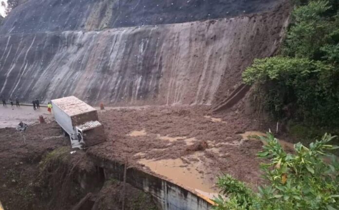 En el sector conocido como El Cinabrio, a la altura del kilómetro 35+500, se registra el cierre total de la vía debido a una nueva emergencia provocada por un deslizamiento de tierra.