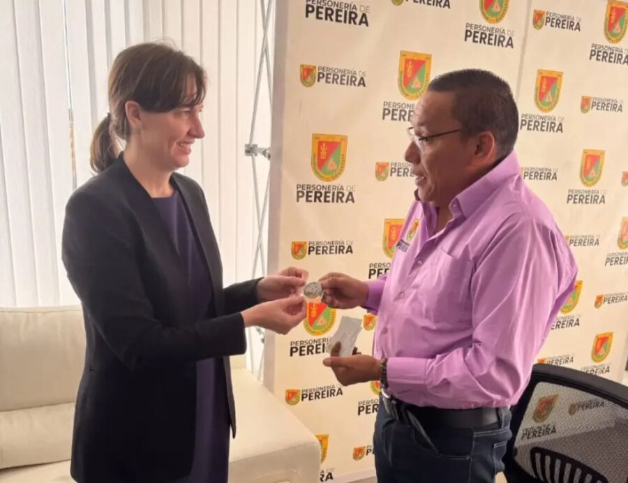 La consejera política Ann Hardman y Juan Carlos Guerrero, asesor de la sección política de la embajada, sostuvieron un encuentro con el personero de Pereira, Leonardo Fabio Reales, en el que abordaron temas relacionados con derechos humanos y protección de poblaciones vulnerables.