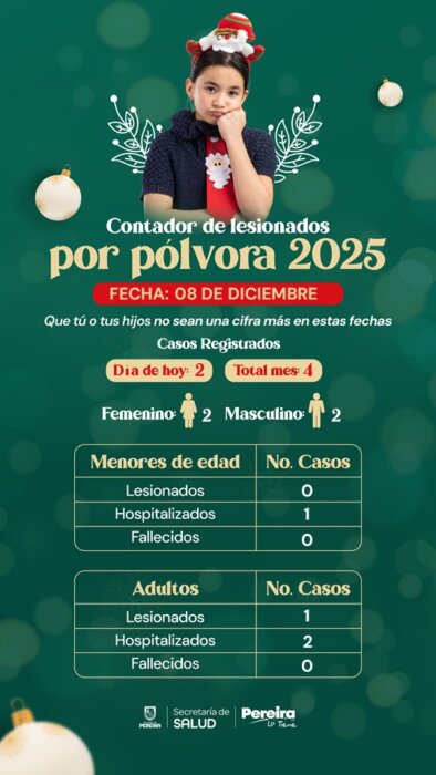 Con estos dos casos, ya son cuatro las personas quemadas con pólvora en Pereira en lo que va corrido de diciembre.