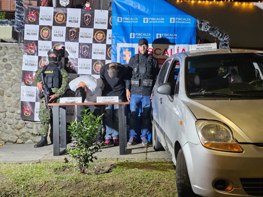 En Pereira, Risaralda, el Gaula Militar Eje Cafetero y el CTI-Gaula capturaron en flagrancia a dos hombres señalados de integrar el grupo delincuencial La Cordillera.