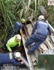 La emergencia fue atendida por organismos de socorro, que con apoyo de la comunidad lograron rescatar al conductor, quien resultó lesionado. Posteriormente, el hombre fue trasladado al Hospital San Cayetano del municipio de Marquetalia, donde recibe atención médica.