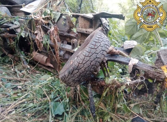 Según el reporte preliminar del Cuerpo Oficial de Bomberos de Manizales y versiones de testigos, el automotor se salió de la vía y rodó varios metros hasta quedar volcado.