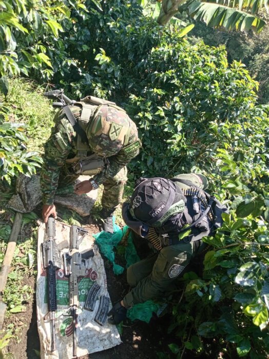 En una operación conjunta entre el Ejército Nacional y la Policía, las autoridades incautaron armamento perteneciente al Clan del Golfo en zona rural del municipio de Mistrató, Risaralda.