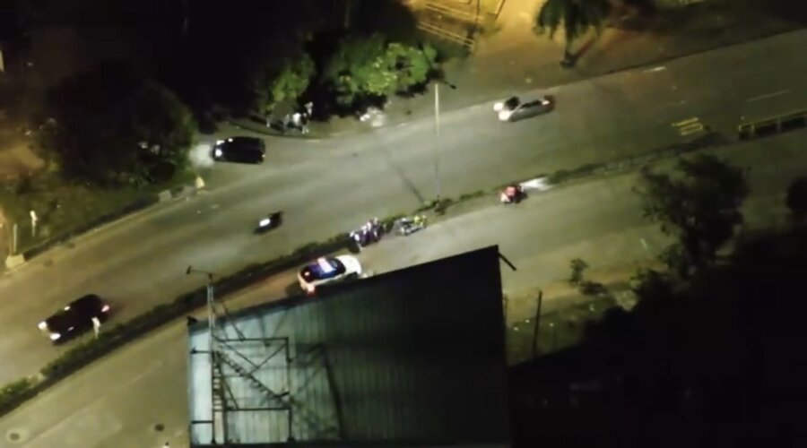 El intento de fuga no solo fue seguido por tierra. Desde el aire, un dron de la Policía monitoreó cada movimiento del motociclista y registró el instante exacto en el que perdió el control y cayó violentamente contra el separador vial.