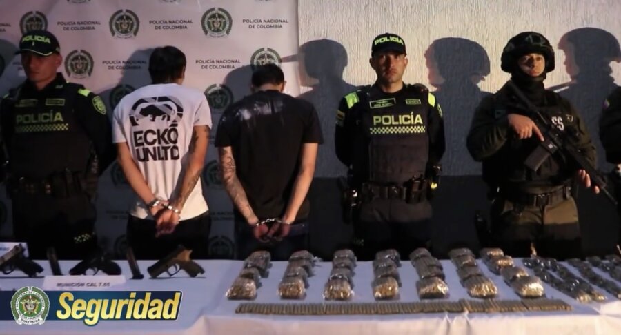 Durante el procedimiento, las autoridades capturaron a tres personas en flagrancia, entre ellas alias “Carnicero”, y hallaron seis armas de fuego, un arma artesanal tipo lapicero y 1.300 dosis de marihuana.