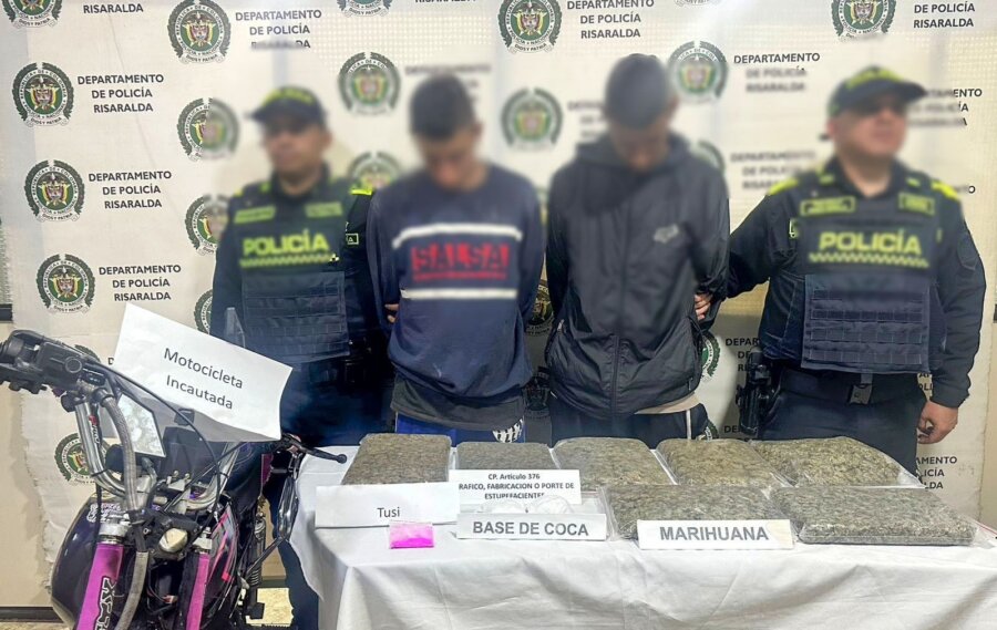 La Policía Nacional capturó en flagrancia a dos hombres en el municipio de Marsella, Risaralda, quienes transportaban más de tres kilos de diferentes estupefacientes.