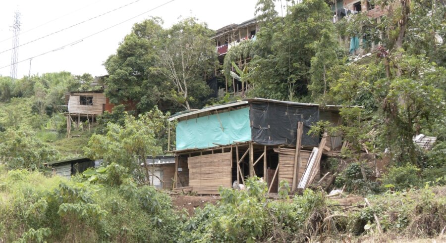 Estas construcciones se ubican bajo una ladera y cerca de infraestructura de acueducto intervenida, lo que agrava el peligro para quienes habitan la zona.