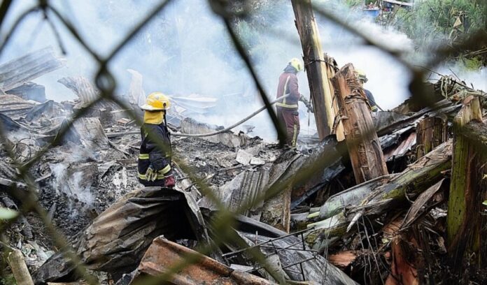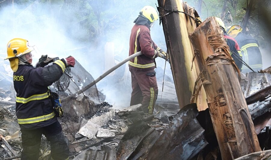 Dos bomberos resultaron lesionados durante atención de incendio estructural en el barrio Miraflores sector de la entrada a la unión baja, Armenia Quindío