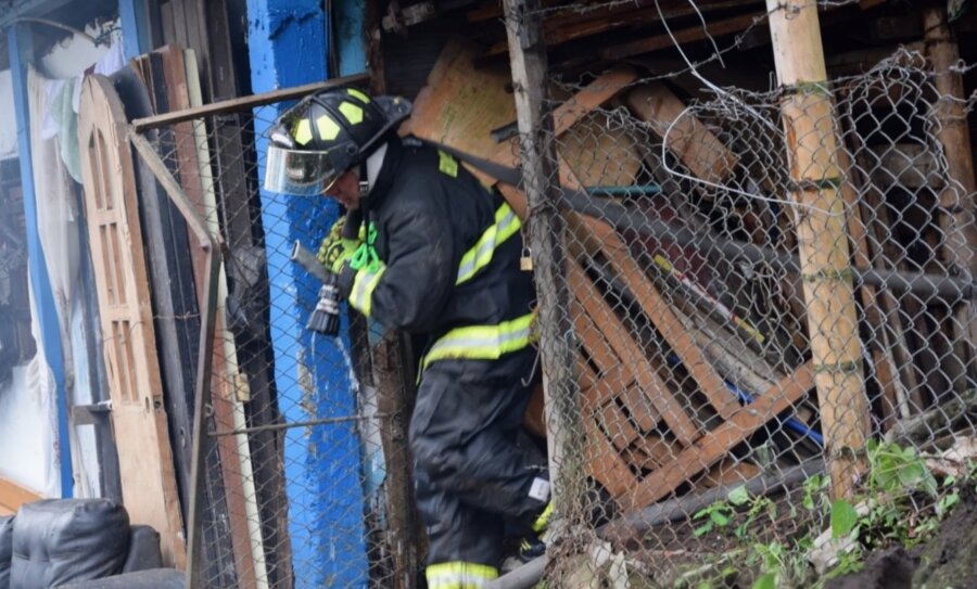 Para evitar una posible reactivación del fuego, los bomberos realizan la remoción de cubiertas de zinc y otros materiales que aún conservan altas temperaturas.