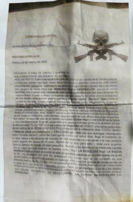 En los mensajes se lanzan amenazas de muerte contra cinco funcionarios del INPEC. También se menciona a un individuo conocido como alias “Coco”, donde se ofrece una recompensa de hasta 50 millones de pesos. Aún no se ha establecido su pertenencia a alguna organización criminal .