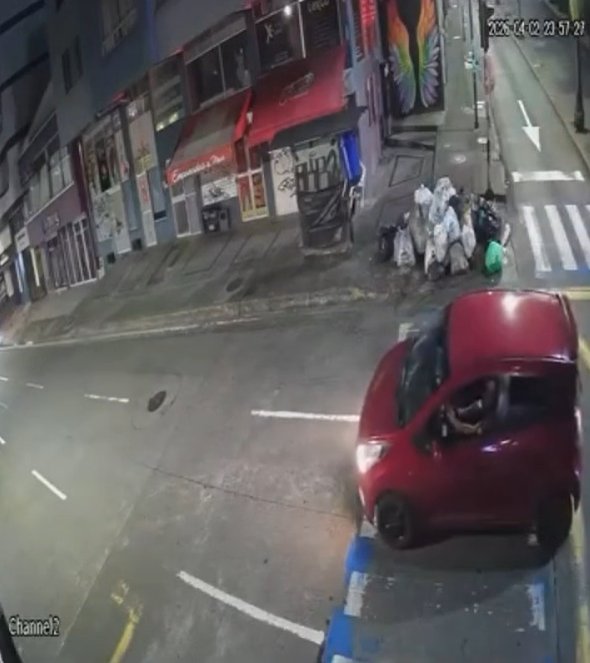 El hecho ocurrió en la esquina de la carrera novena con calle 24, en inmediaciones de la Universidad Andina. En las imágenes se observa el momento en que la mujer desciende en patines por la calle 24, mientras un vehículo rojo avanza por la carrera novena y, al parecer, se pasa el semáforo en rojo, impactándola violentamente.