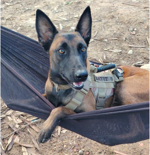 Se trata de Hela 5, una canina de raza Pastor belga que integra el Grupo de Explosivos y Demoliciones (EOD). Tras el ataque, la perrita permaneció desaparecida durante siete días, generando incertidumbre entre sus compañeros de unidad.